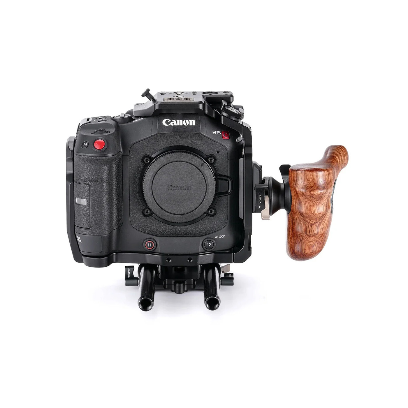 Denne specialdesignede kameracage til Canon C80 kombinerer solid beskyttelse med omfattende monteringsmuligheder til professionel brug. Den er udstyret med knapforlængelser, der integreres sømløst med kameraets originale betjeningselementer og giver præcis, taktil feedback – ideelt til hurtig og intuitiv betjening under optagelse.