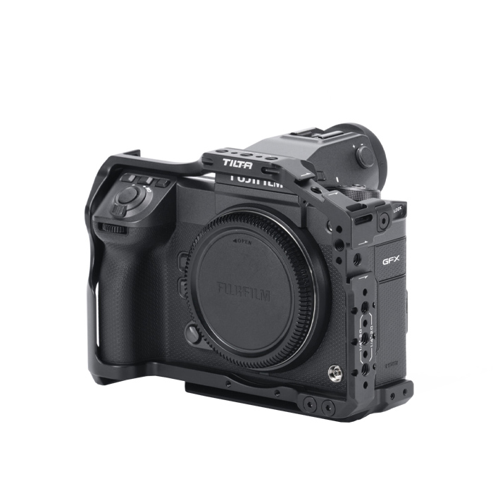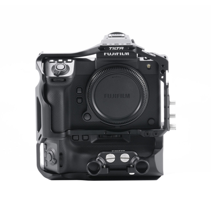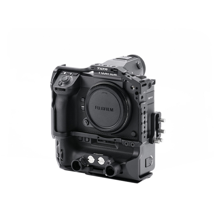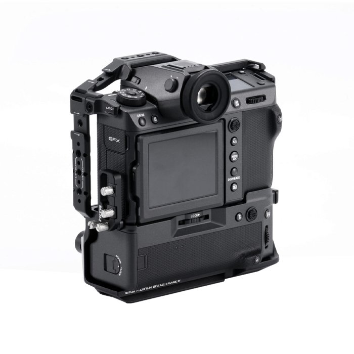 This cage is compatible with the camera body of Fujifilm GFX 100 II with or without the EVF and is also compatible with the original Fujifilm Battery Handle Grip.