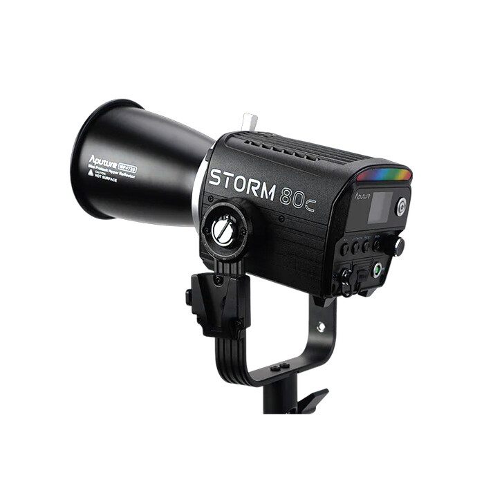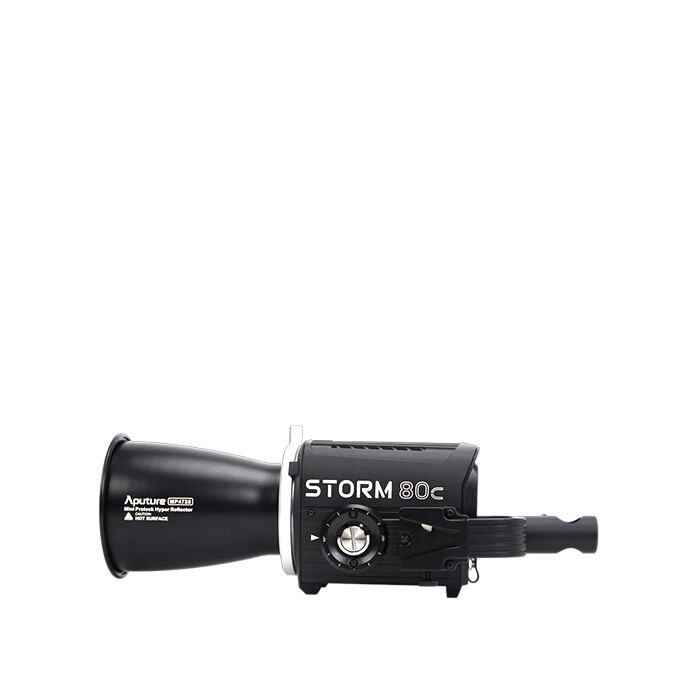 The STORM 80c features a mini version of the ProLock locking Bowens Mount, a more secure clamping design for attaching modifiers. Aputure offers modifiers with the Mini ProLock and an adapter to standard Bowens Mount.