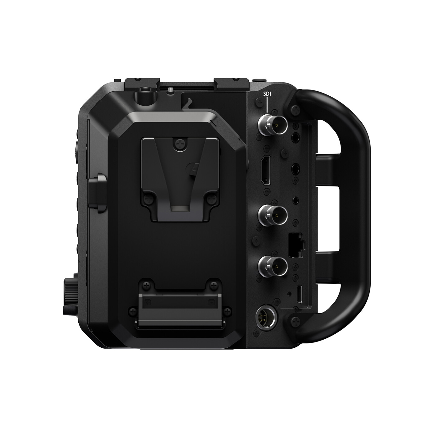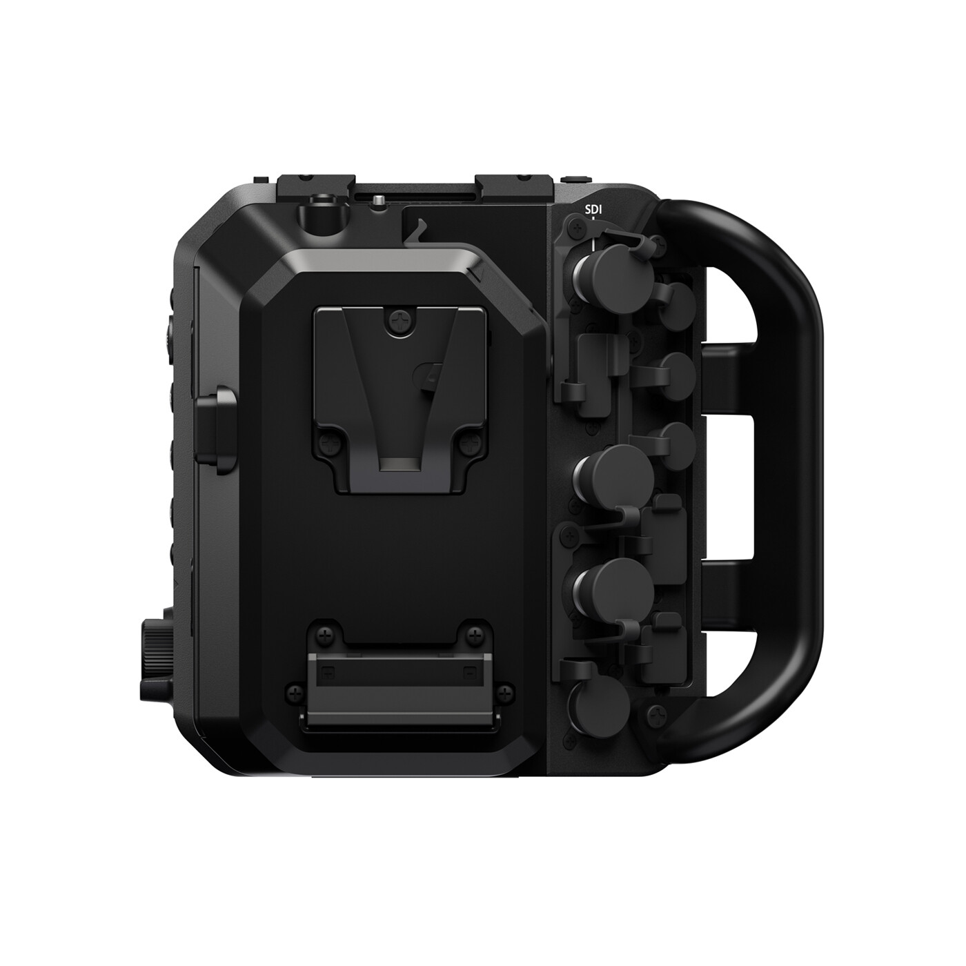 Kameraet drives via et dedikeret V-Mount batteriinterface og understøtter også internt aftageligt NP-W235 batteri. Dette giver op til 30 minutters optagelse uden eksternt batteri. Når det eksterne batteri skiftes, overtager NP-W235 batteriet strømforsyningen, hvilket muliggør “hot swap” uden genstart af kameraet.