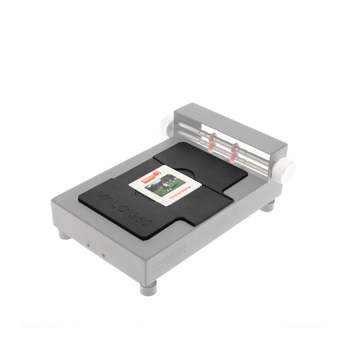 The VALOI Slide Holder is designed to securely and effectively hold standard mounted slides for high quality digitization with a digital camera scanning setup.
