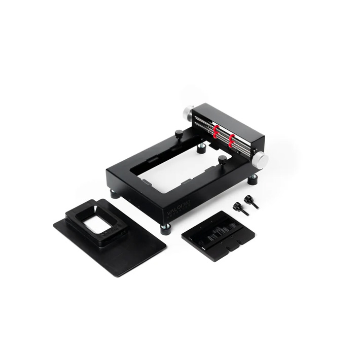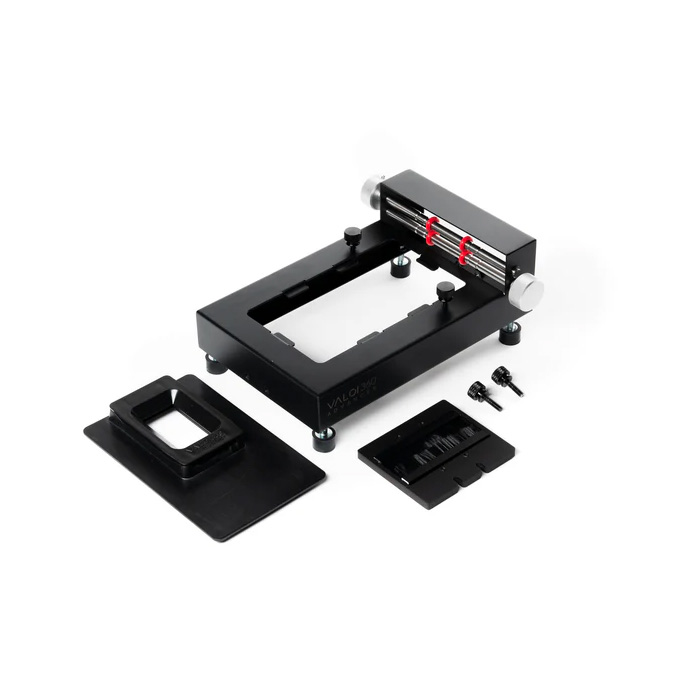 Dette sæt er perfekt til dem, der gerne vil have fordelene ved VALOI 360-systemet, men som allerede har deres egen lyskilde. Yderligere holdere, som f.eks. en holder til scanning af tandhjulene på 35 mm film, kan tilføjes separat.