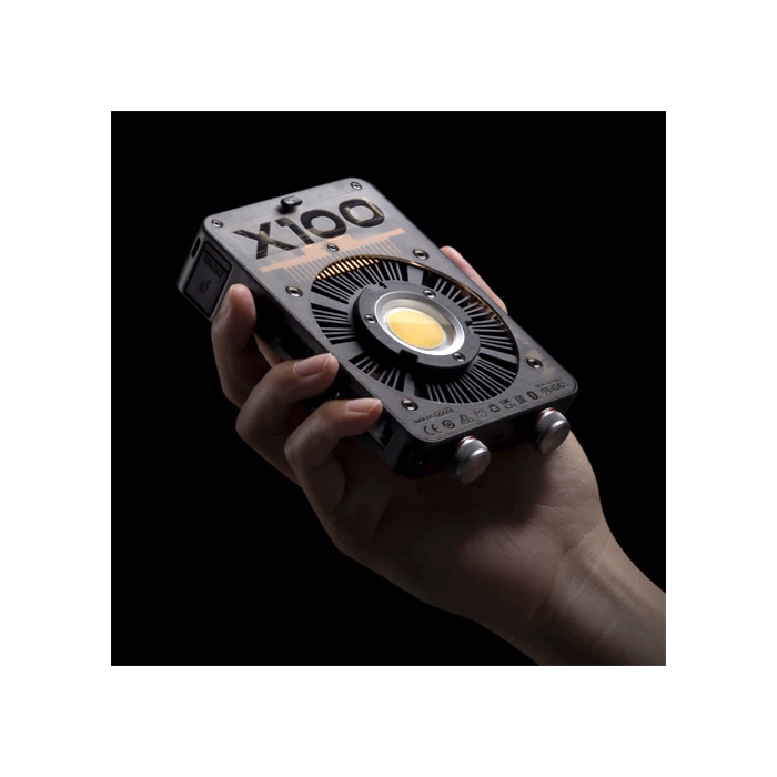 Vægten på kun 385 g og evnen til at levere 100 W effekt gør Zhiyun Molus X100 til en kraftfuld LED-lampe i en lille pakke der kan benyttes til professionelle produktioner. X100's CCT varierer fra 2700K-6500K med en CRI≥95 og TLCI≥97. Content creators, der er på farten, kan minimere nedetiden med tre måder at strømforsyne lampen på, idet de kan vælge mellem et batterigreb, en DC-adapter eller 100W PD hurtig opladning. Brugerne kan nemt justere lysets farvetemperatur og lysstyrke for at opnå den ønskede effekt enten via Bluetooth eller indbyggede kontroller. Med Music Mode på kan lyseffekter udløses af lyd. F.eks. som en lyneffekt, til simulerede skud eller ændring i takt fra musik.