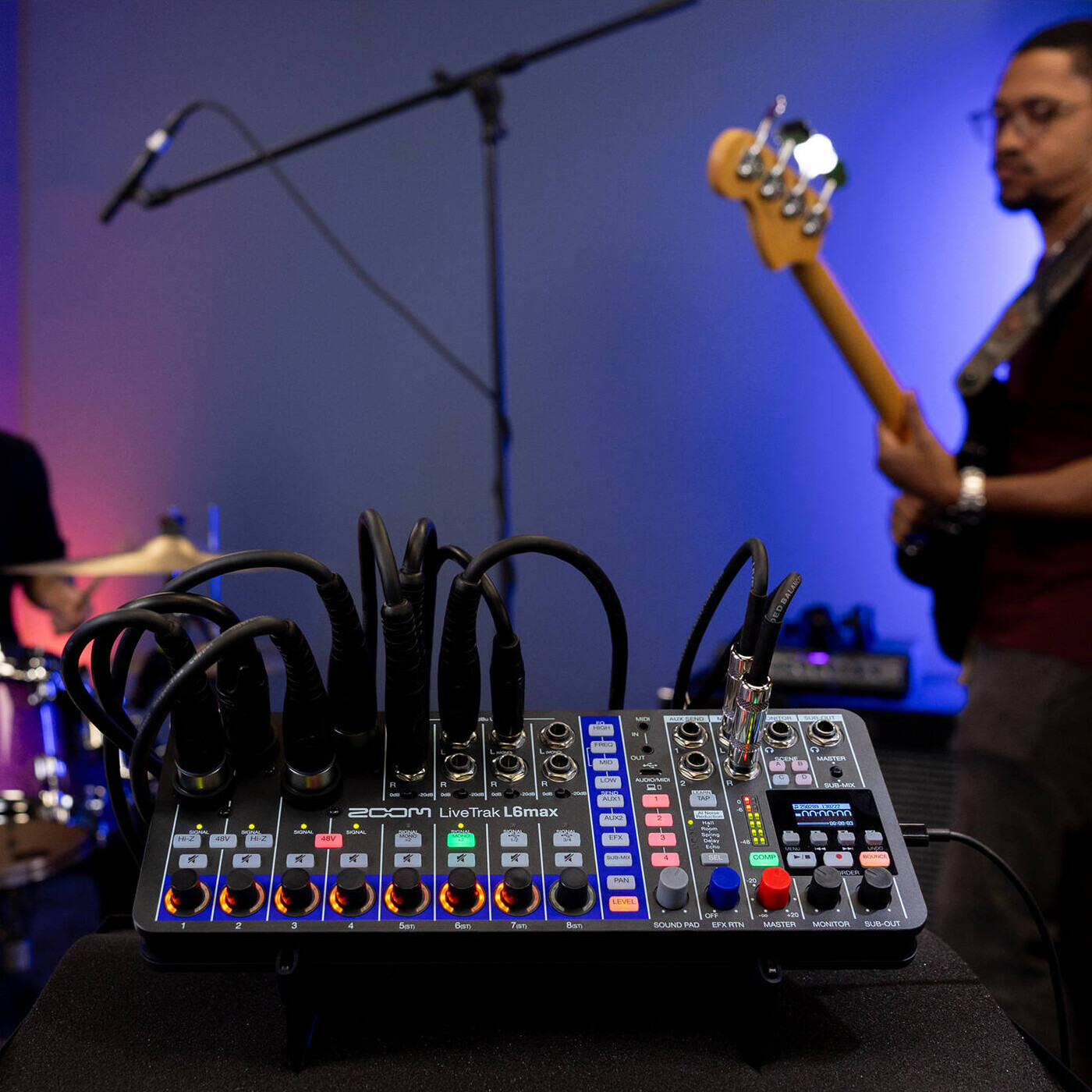 Turn on AI Noise Reduction and let the L6max intelligently remove hum, hiss, and background noise - while preserving every detail of your voice and instruments.